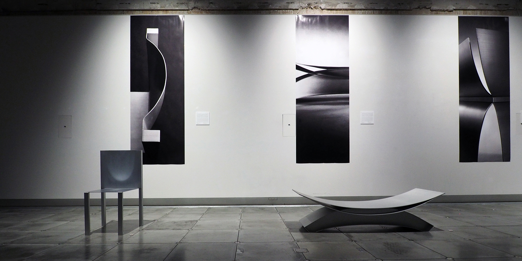 2018年から菊川工業株式会社とのコラボレーションで制作してきたアルミニウムの椅子シリーズ「ALUMINA」の全作品7点を展示する展覧会。