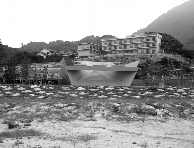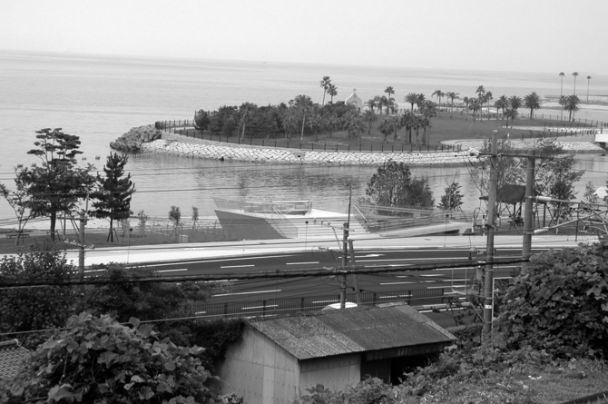 敷地は、大分市の田浦ビーチの近く、国道沿いの遊歩道と海岸には1.5m近い高低差が存在し、また、植栽の関係から、遊歩道と海岸は自由に行き来するが許されていない。