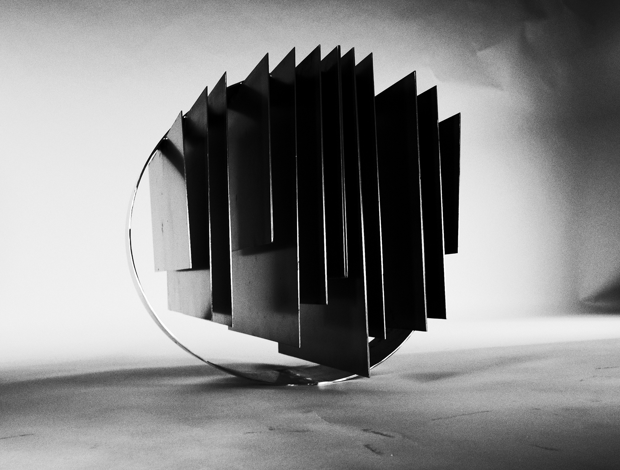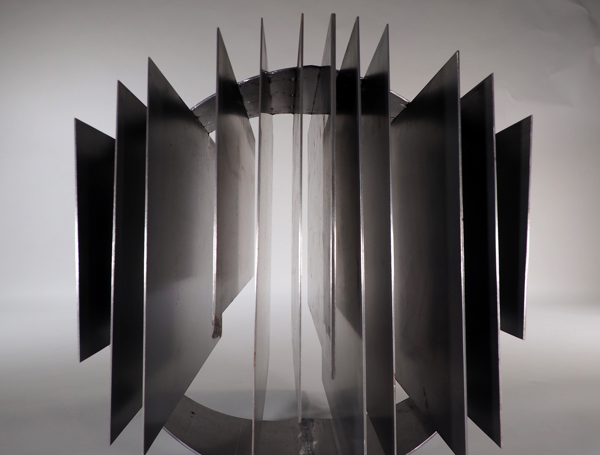 JIGは、外形が整然とした幾何学の正円のリングの形をなし、その中に異なる厚さの鉄板が、異なる高さをもちながらバーコードのように吊り下げられた立体である。