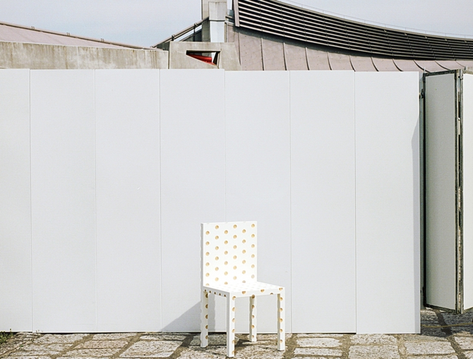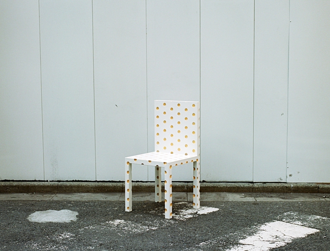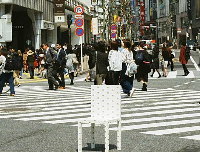 ドットに意識を集中すると、椅子はありふれた普通の椅子として意識から遠ざかり、風景へと溶け込んでいく。また白い地の部分に意識を集中すれば、ドットの施された椅子は、普通とはかけ離れた、あまりにも異様な椅子に見えてくる。