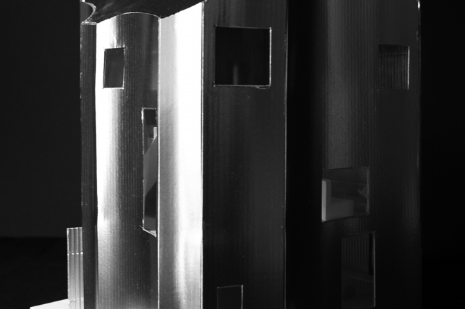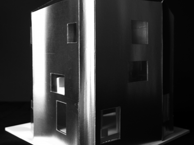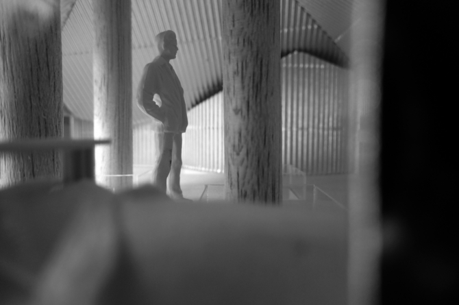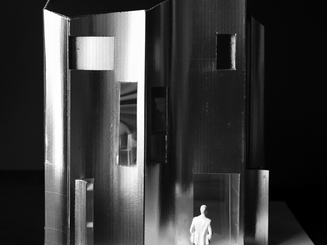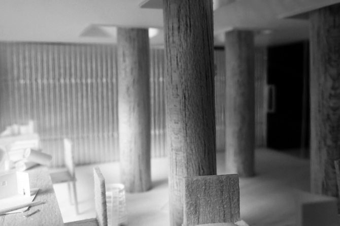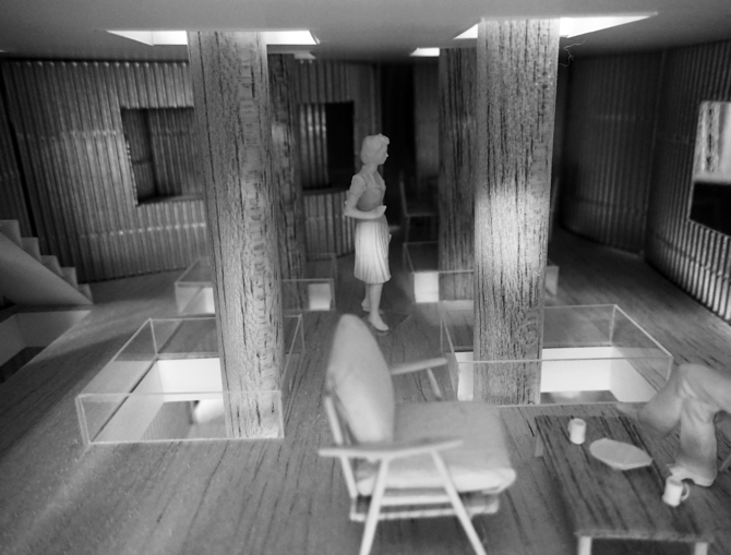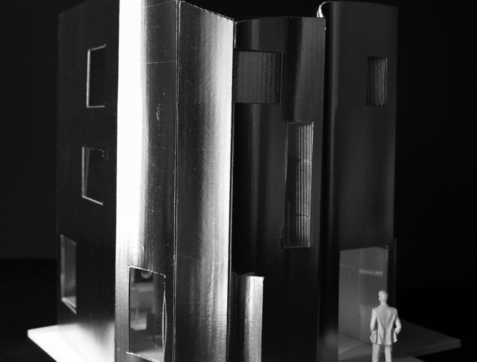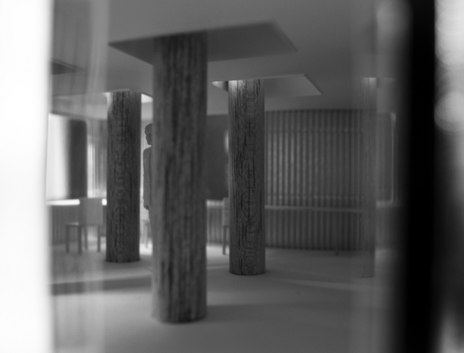 この建物においては、(四本の)柱はこの住宅を成り立たせるために必要なのか? それとも、四人の家族のために、(四本の)柱を立てるためだけに住宅という存在が必要なのか? その両義性を問い続ける。