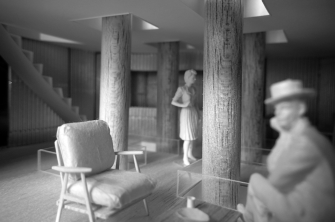 「四本柱建物」の計画から三年。「四本柱建物」の柱の周りに、ただ、吹き抜けを設けただけとも言える。ただそれだけのために、三年も掛かったことを今思う。