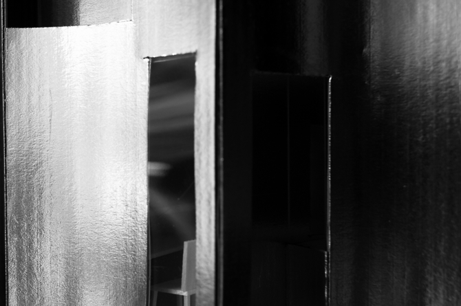 「続・四本柱建物」では、床を貫く通し柱が、床に固定されず、独立して立ち、最上階の天井まで延びていく。