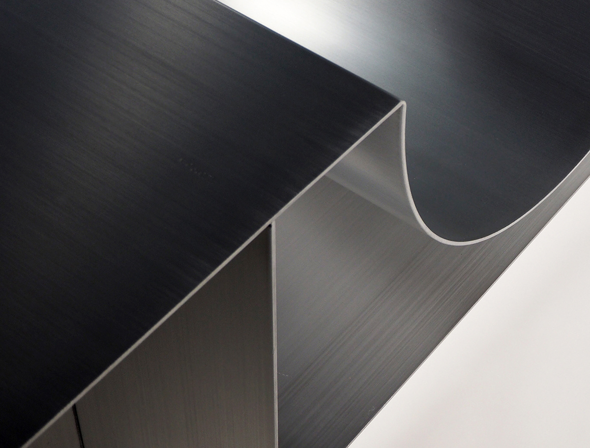 前作の「Shades of Michelangelo」に続き、菊川工業株式会社の協力のもと、制作を続けているアルミニウムを使用した実験家具である。