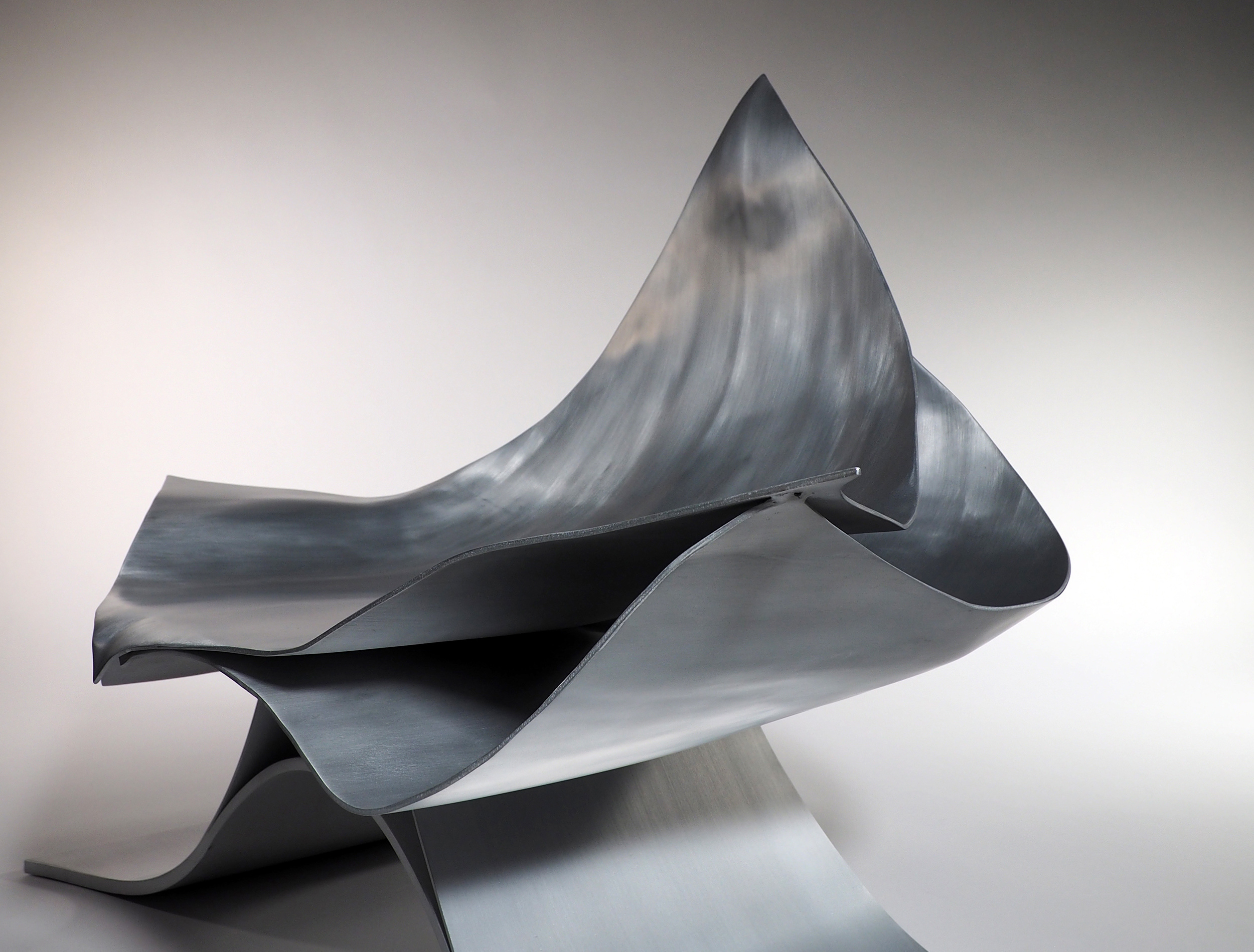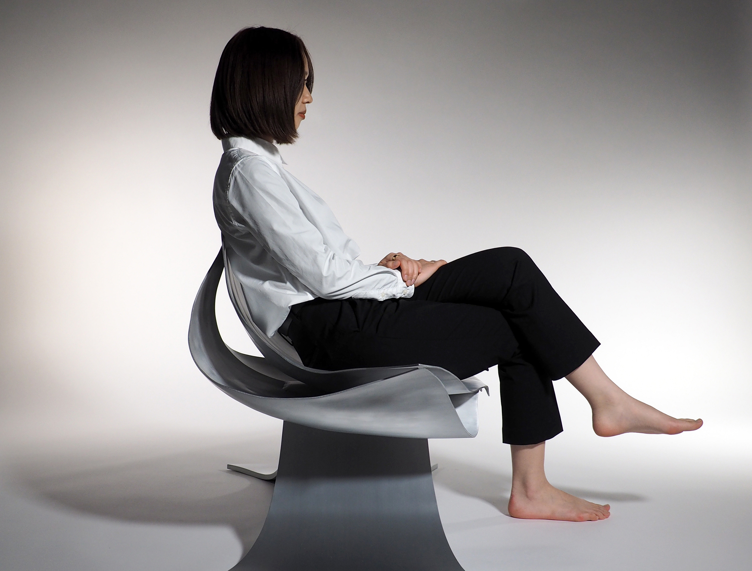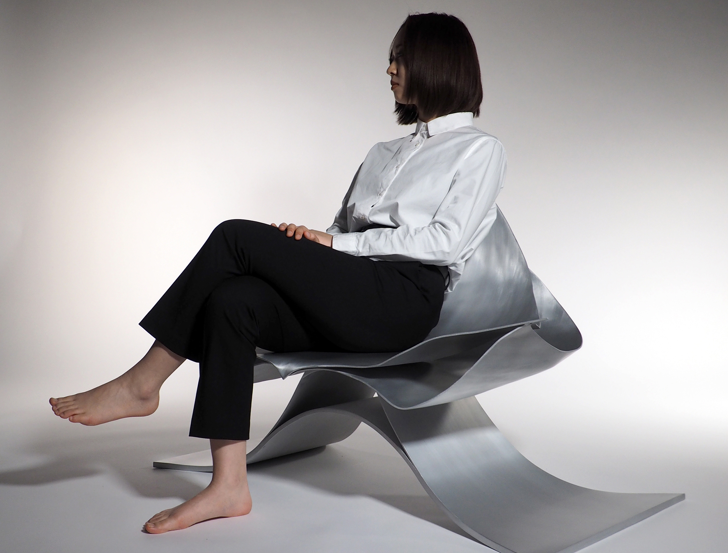 The flowing expression on the surface created by forming the aluminum sheet into a three-dimensionally curved surface looks truly beautiful and calm. We designed a lounge chair that can withstand a weight of up to 100 kg by stacking a minimum number of thin aluminum sheets that maintain this beauty and calm.