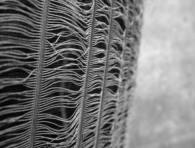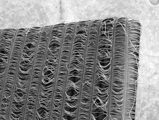 今回採用された特殊な生地は、座る度に、洋服に引っかかる。引っ掛かることで、糸がほつれる。引っ掛かることで、糸が破れる。引っ掛かることで、全体の形状が崩れて行く。