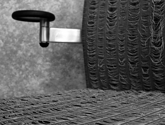 そこで、カバーリングは一見、オフィス家具では有り得ないような畳のような表情をもった素材にした。また、椅子を使用する毎に、その表情が日々変化していくような素材選びにもこだわった。