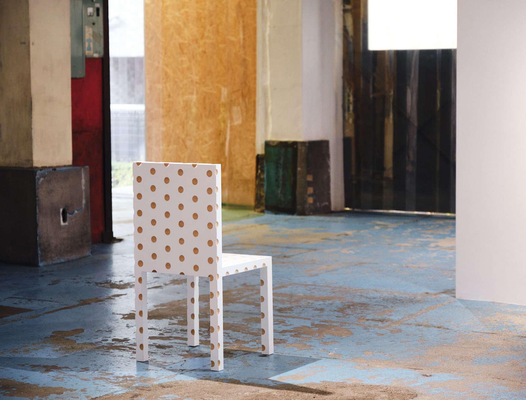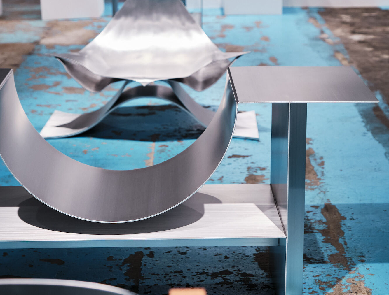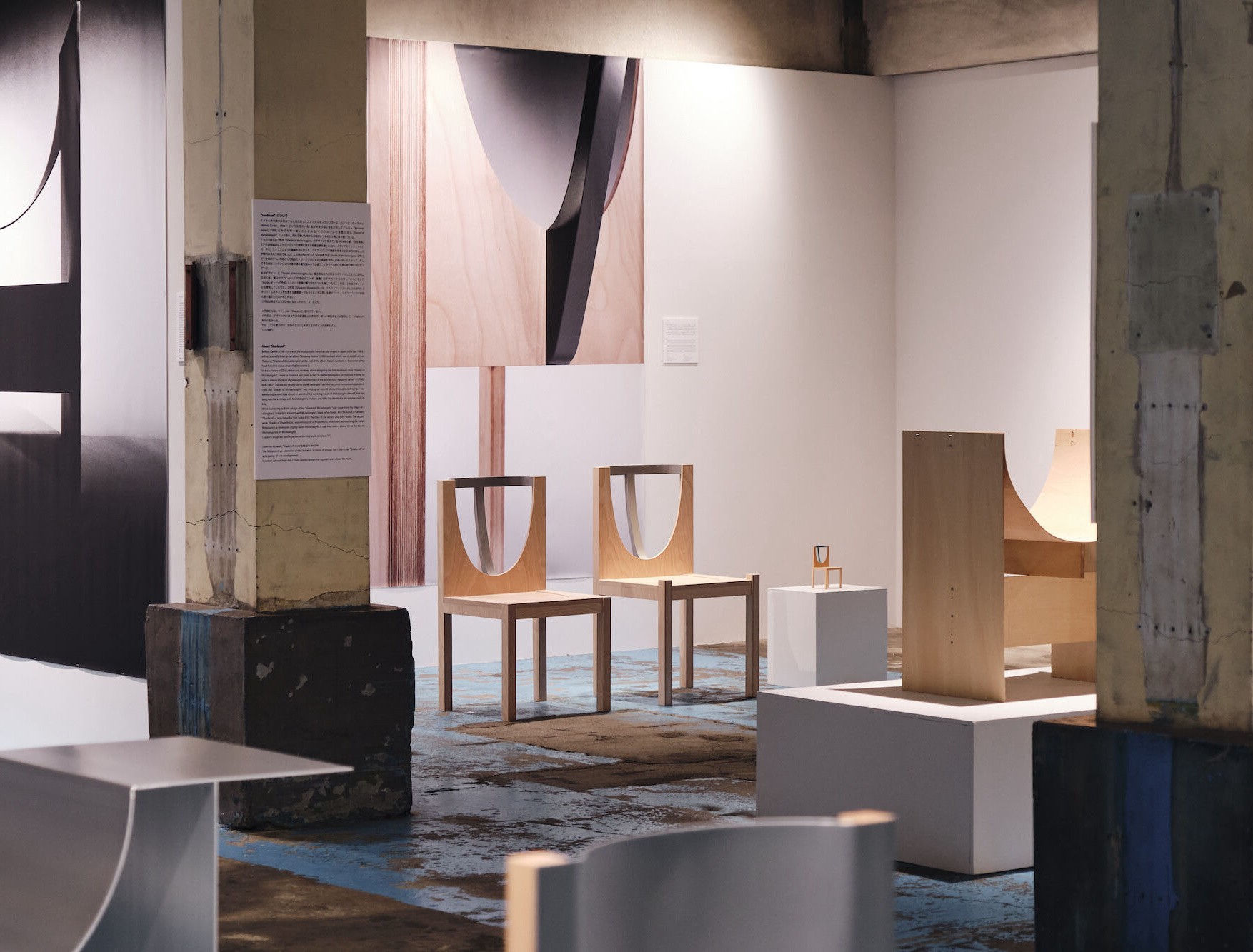 2018年から菊川工業株式会社とのコラボレーションで制作してきたアルミニウムの椅子シリーズ「ALUMINA」の全作品7点を展示する展覧会。