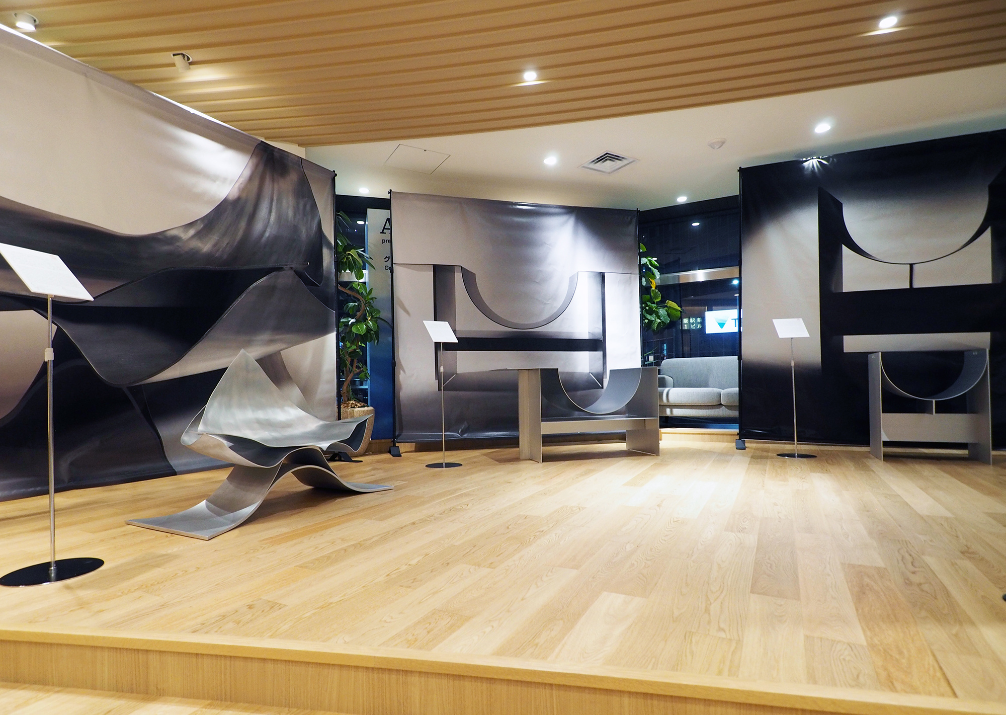 『ART & CITY AWARD presents シエリアタワー中之島』の受賞記念として、大阪梅田駅前のシエリアサロン大阪梅田ライフデザインミュージアムで個展を開催。新作「PENG-01」を含むアルミの椅子5点を展示します。