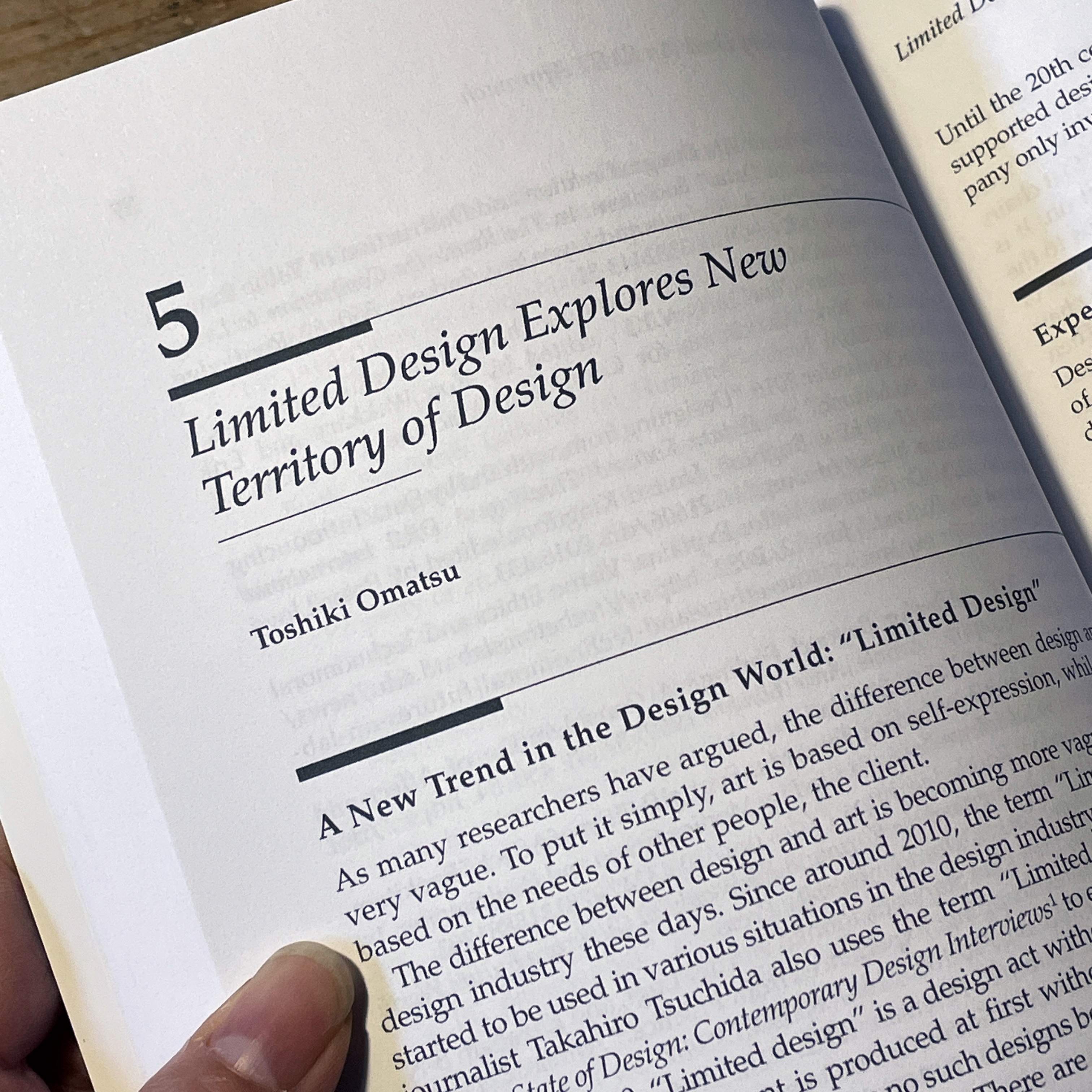 私は第5章で「Limited Design Explores New Territory of Design」という論文を写真も含め25ページ程度で書いており、2018年から継続して制作しているアルミニウム製の椅子の制作に関するお話をもとに、昨今のデザインの動向を語っています。
