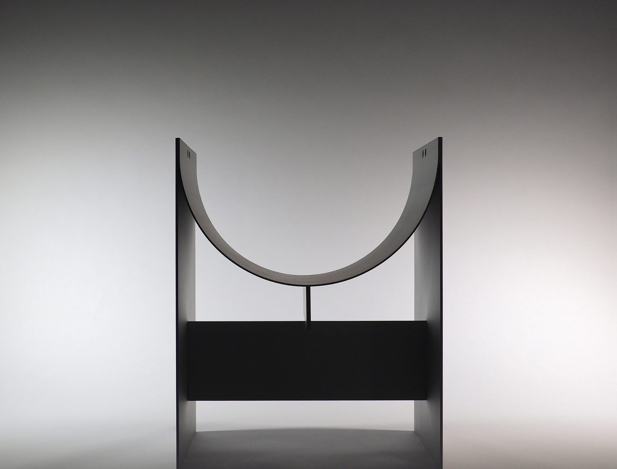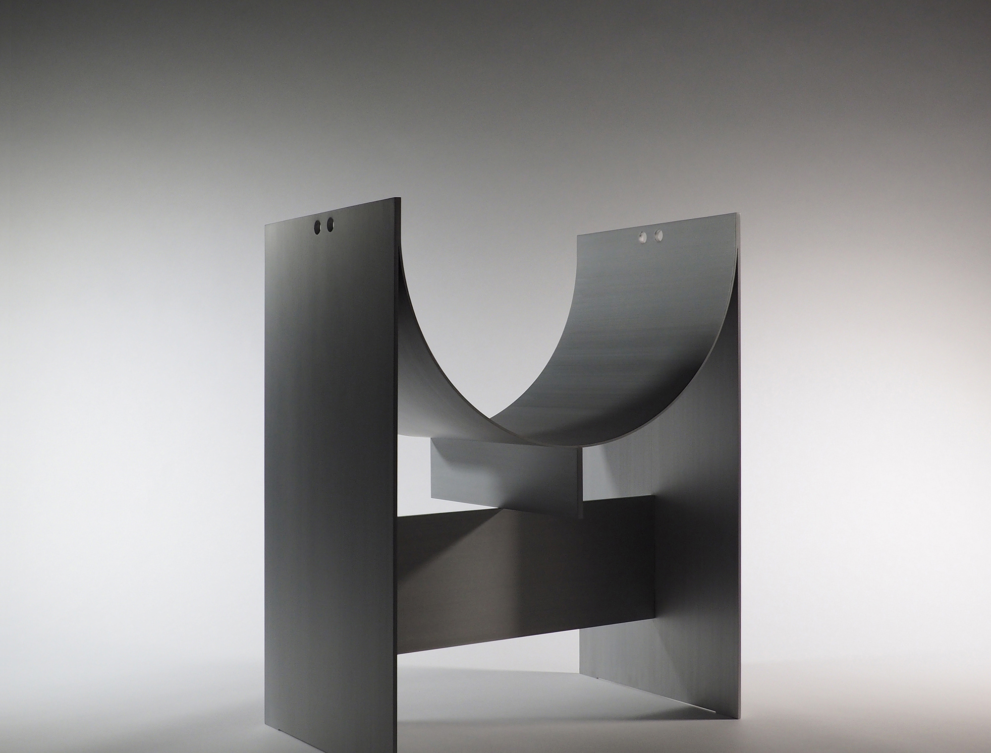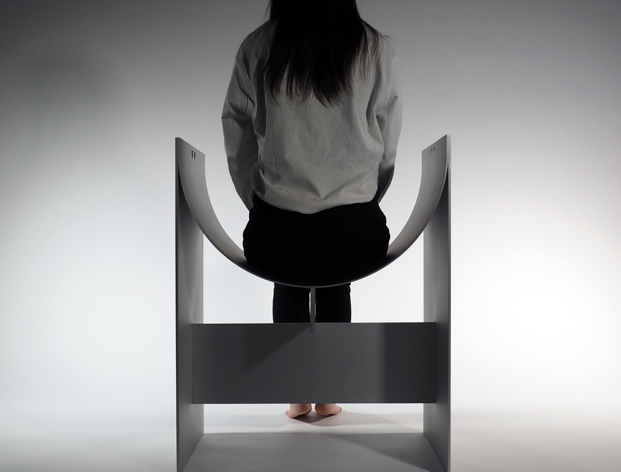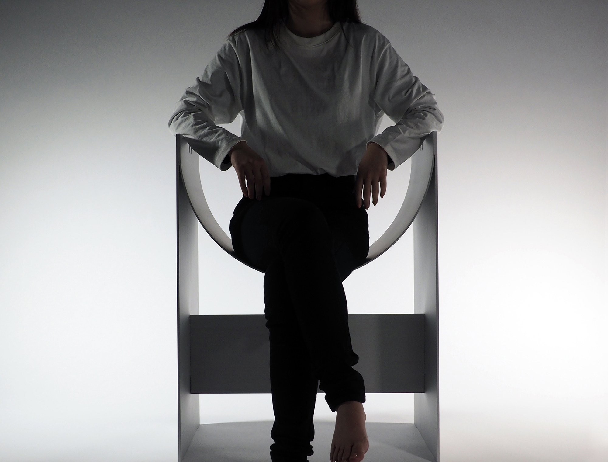 One would be in an unsettled mood when you sit inside the semicircle, which one rarely sit on. On the other hand, by making the seat surface a semicircle, the armrests are integrated directly into it the structure, and it defuses one’s tension as if being wrapped. Sitting in this chair gives the user such a complex feeling of tension and defused friction.