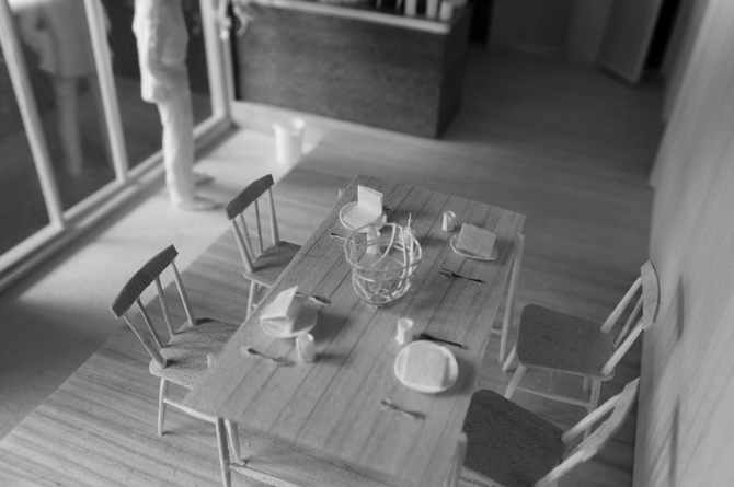 約三年という長い設計期間の間には、予算の変更、家族間の意見の相違などにより、計画案は何度も何度も変更された。そして、最終的に辿り着いたのが、計画案の中では一番小さく、「土間の家」と同じ、四間×四間の正方形平面であった。