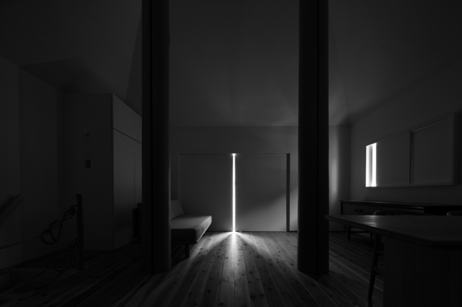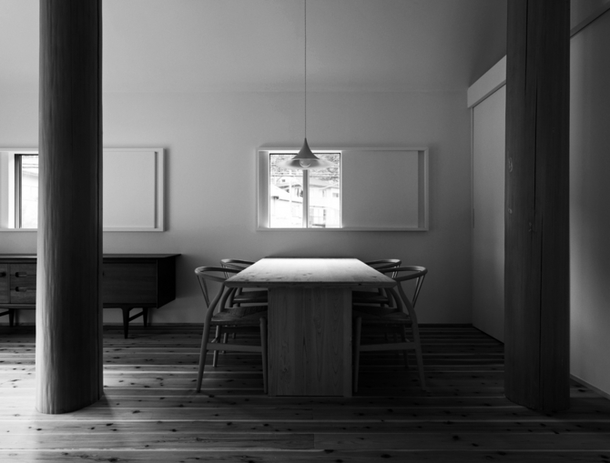 A four-column configuration, structurally simple but conceptually complex, is commonly found in traditional Japanese dwellings. Recent advances in structural engineering eliminate the need for columns within small-scale buildings like a single-family house. A compelling rationale is required to place any columns within the house.
