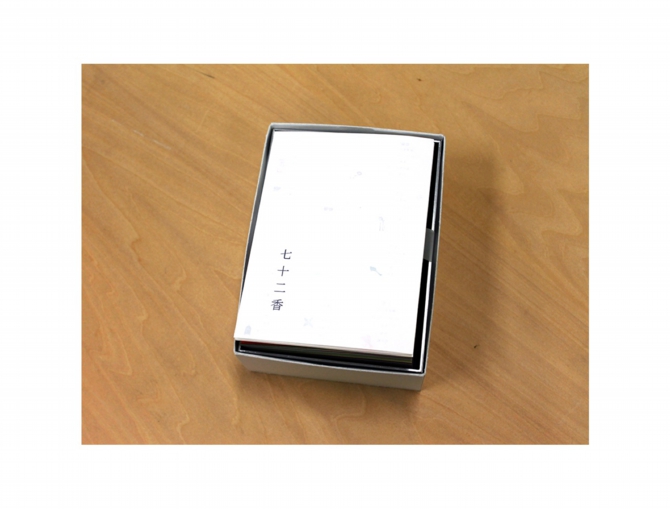 「七十二香」は、季節の風物詩に沿った七十二色の日本の伝統色の和紙で構成されており、五日間は同じ色の和紙が続きます。和紙には、エンボス加工で、毎日の日付や風物詩がさりげなく示されています。また、和紙にはお香の成分を含ませることで、ちぎって捨てる古い日付を、巻いて燃やすことでお香として楽しむことができます。このお香は七十二の季節に合った異なる香りを含ませることで、七十二ある季節をより意識することに繋がります。