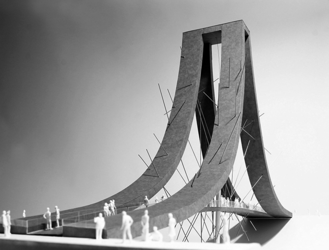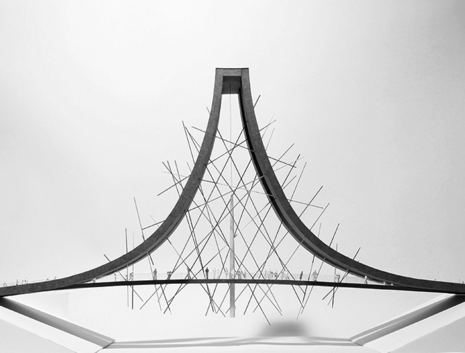 そのためにも、橋の形態は南三陸に押し寄せる波を表し、また南三陸を取り囲む山をも表す。それは、南三陸の豊かな自然を抽象化した形態であり、かつ、構造的にも二つの存在が“支え合う”ことを示している。