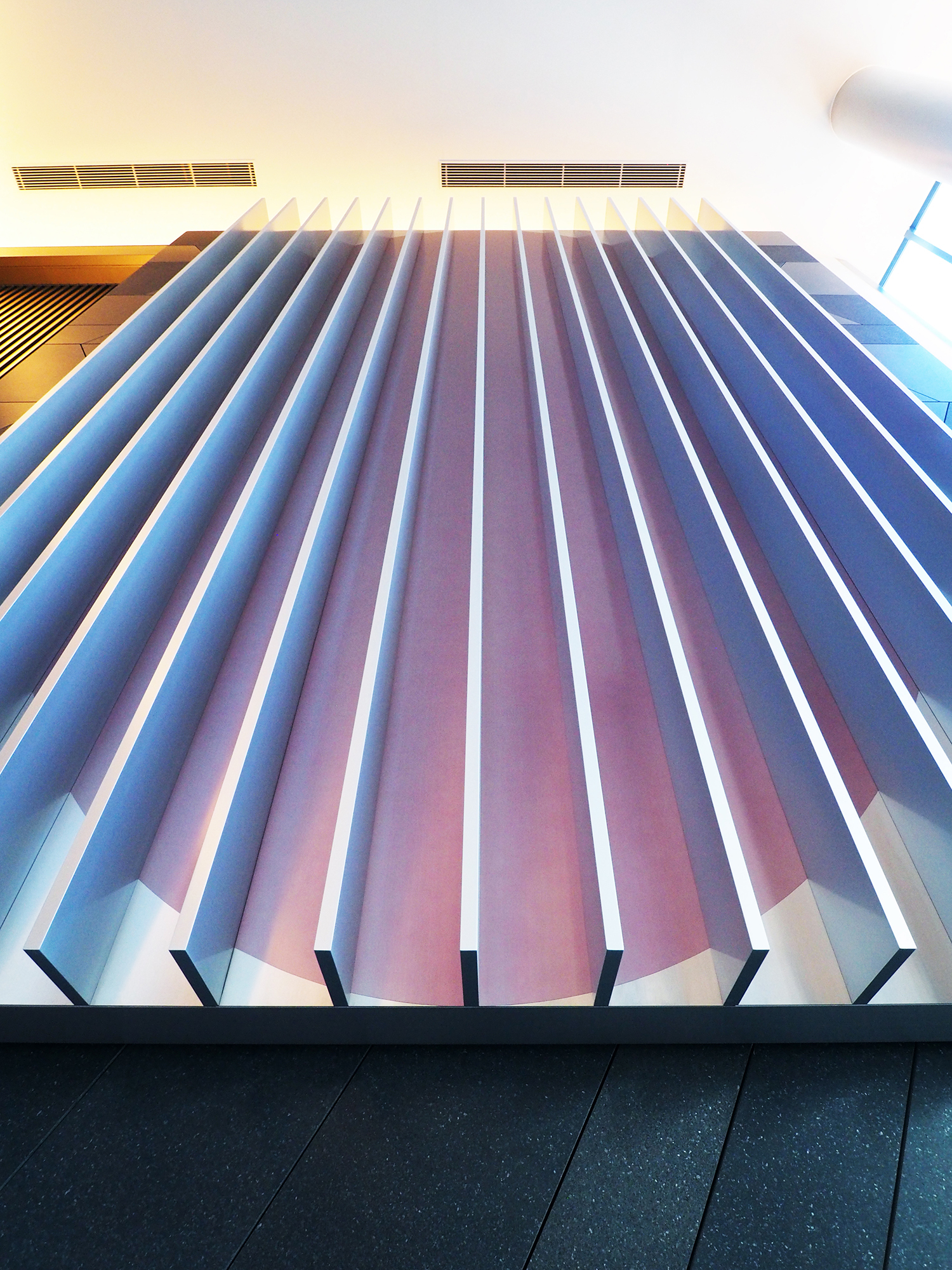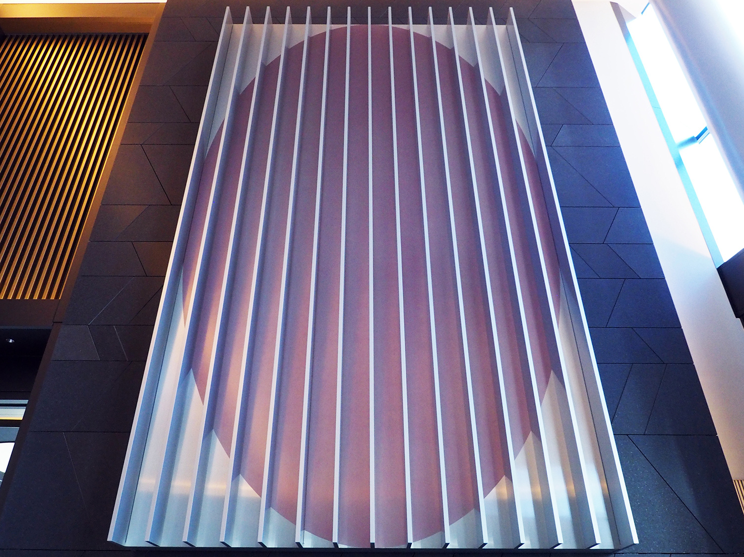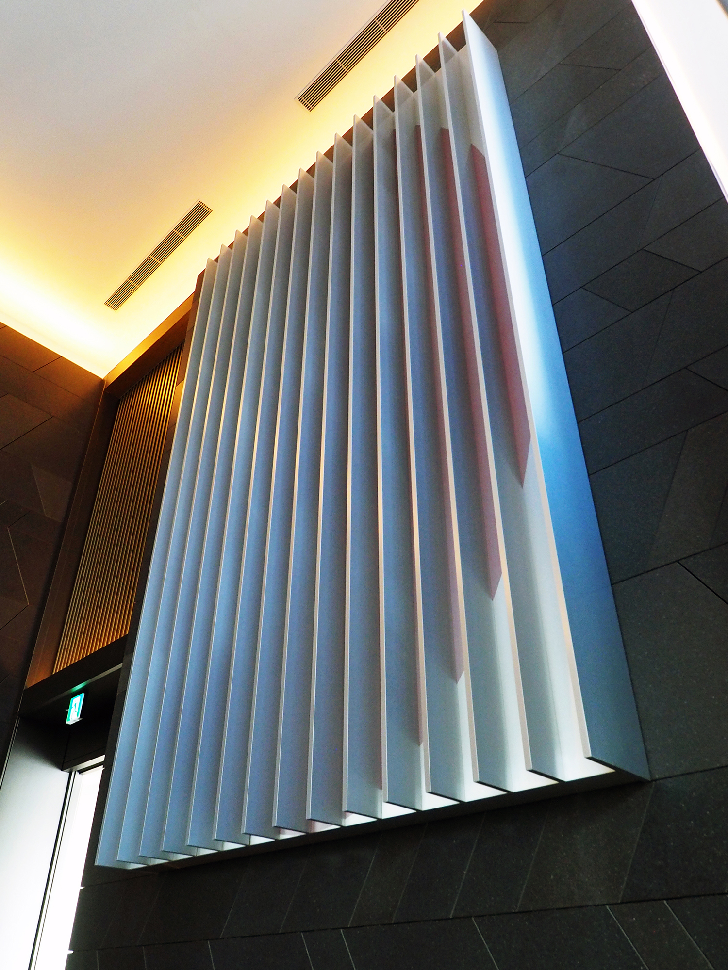 この作品は、建物のグランドエントランスに設置した高さ5m、幅3mの巨大な金属製の立体である。