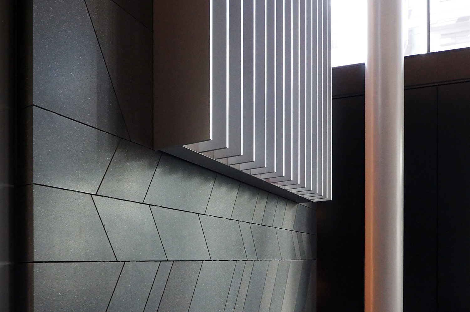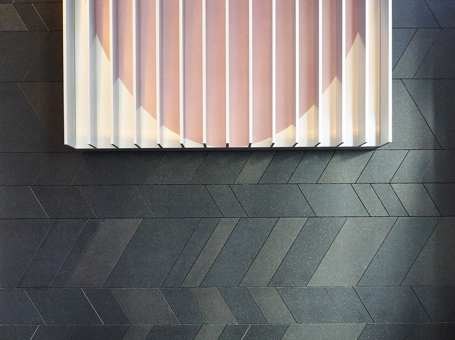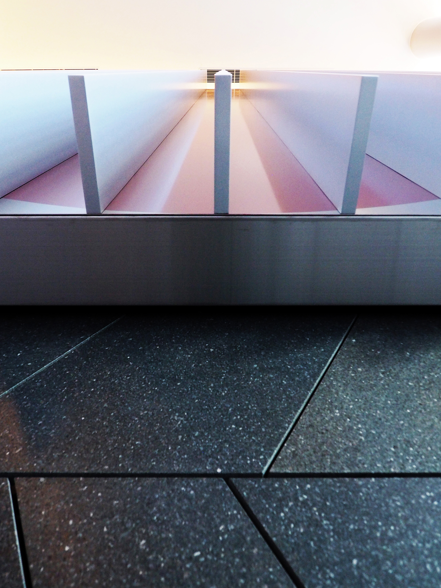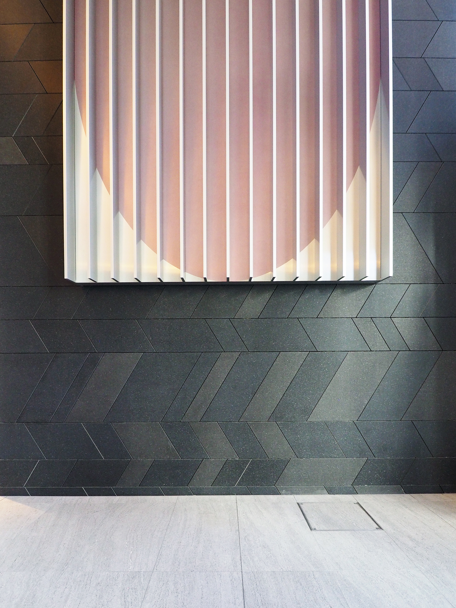 この作品は、建物のグランドエントランスに設置した高さ5m、幅3mの巨大な金属製の立体である。